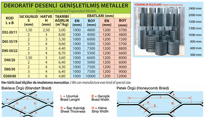Ürün Adı : Genişletilmiş Metal Dekoratif Desenli